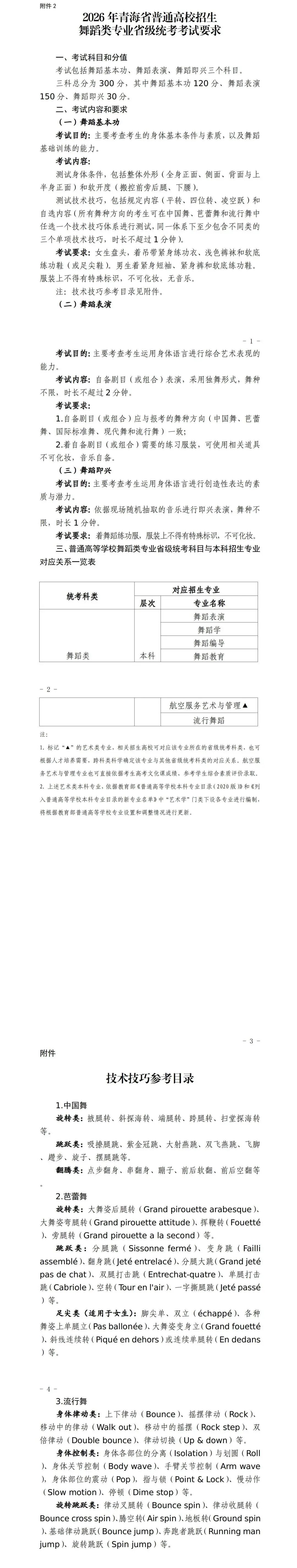 2.2026年青海省普通高校招生舞蹈类专业省级统考试要求
