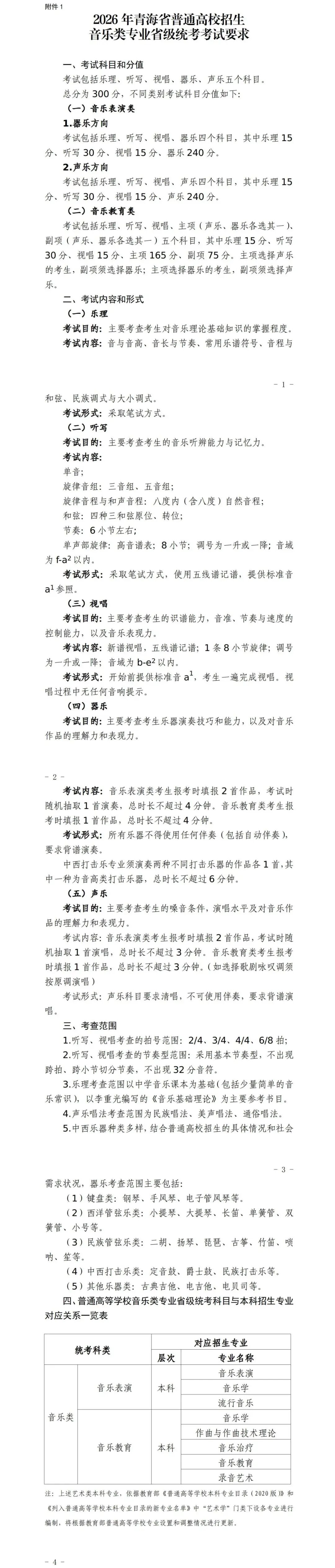 1.2026年青海省普通高校招生音乐类专业省级统考考试要求