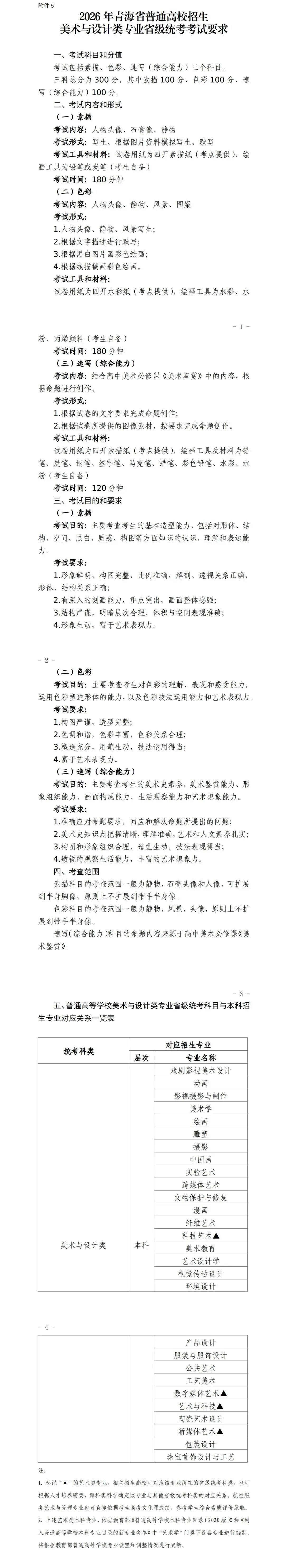 5.2026年青海省普通高校招生美术与设计类专业省级统考考试要求
