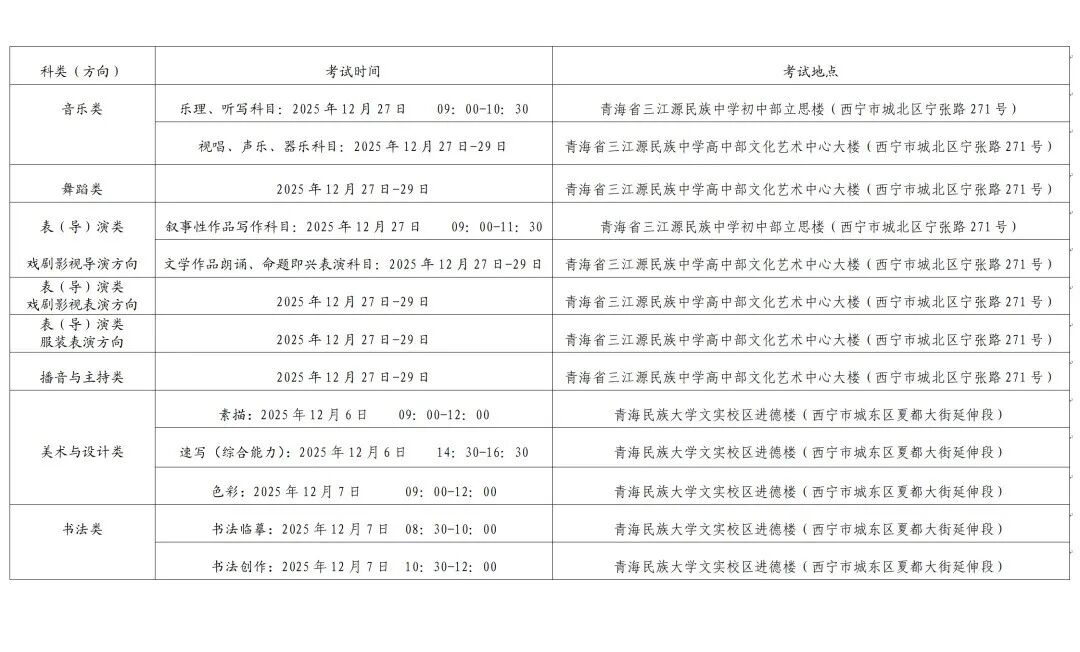 2.音乐类、舞蹈类、播音与主持类、表(导)演类:2025年12月22日至12月29日。