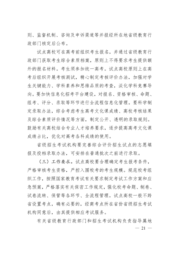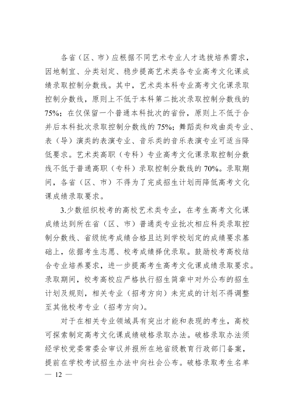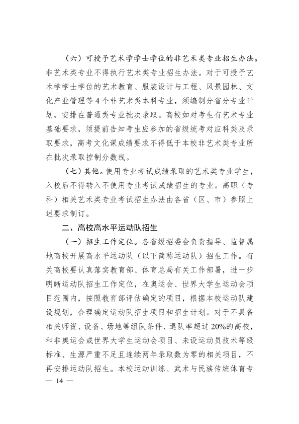 高校艺术类专业、高水平运动队、保送生、综合评价招生工作严格按照本通知要求执行。各地各高校按有关规定组织的单独招生、强基计划、高校专项、拔尖创新人才选拔培养、体育类专业等考试招生工作参照执行。本通知未尽事宜按照当年有关招生工作规定执行。请各省级教育行政部门将本通知转发至本行政区域内有关高校。
