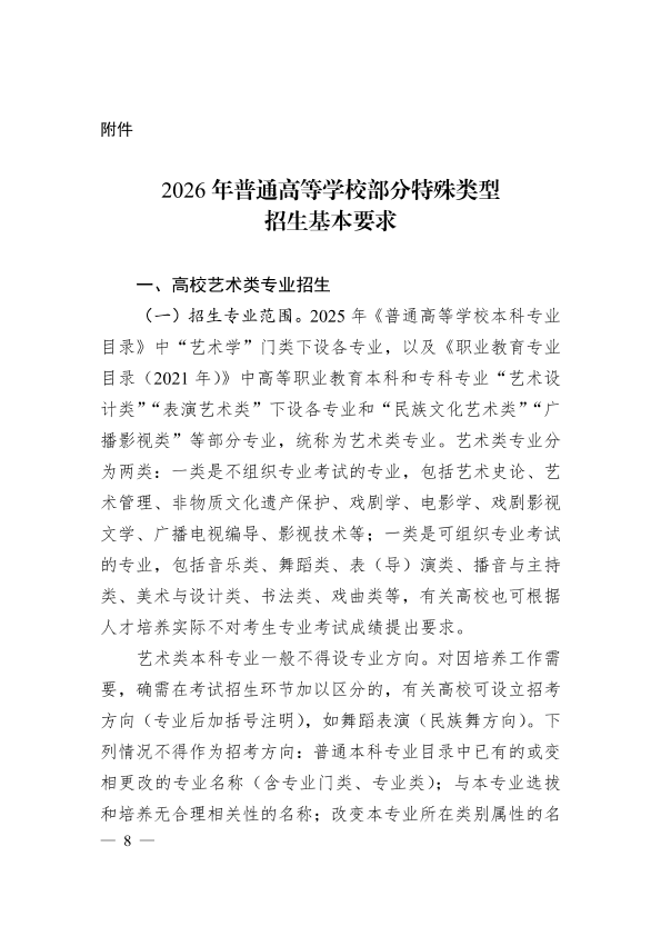 附件:2026年普通高等学校部分特殊类型招生基本要求