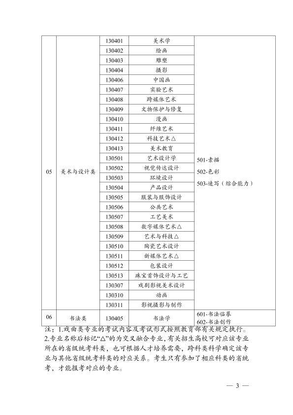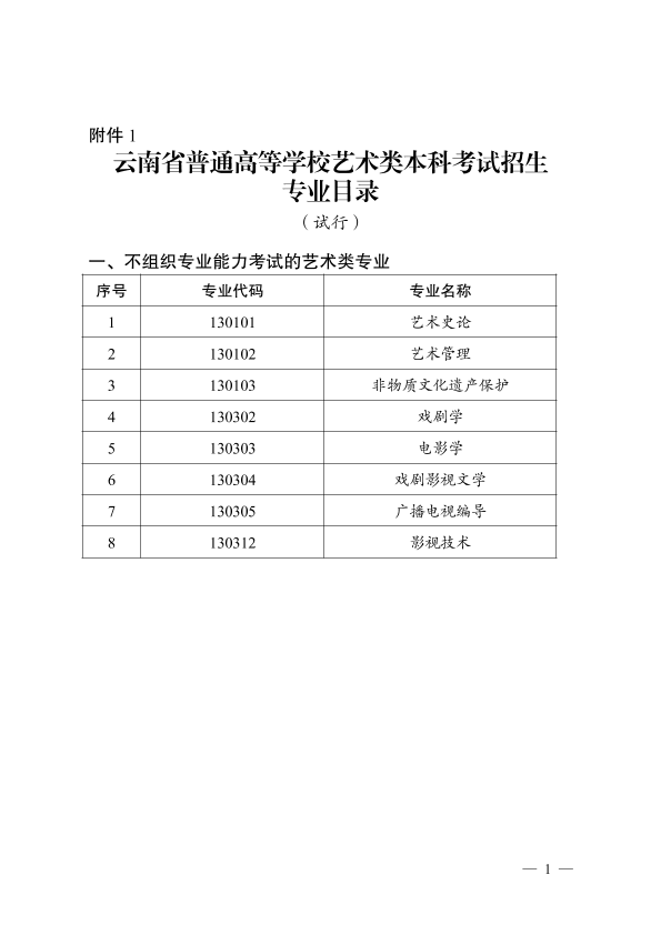 1.云南省普通高等学校艺术类本科考试招生专业目录(试行)