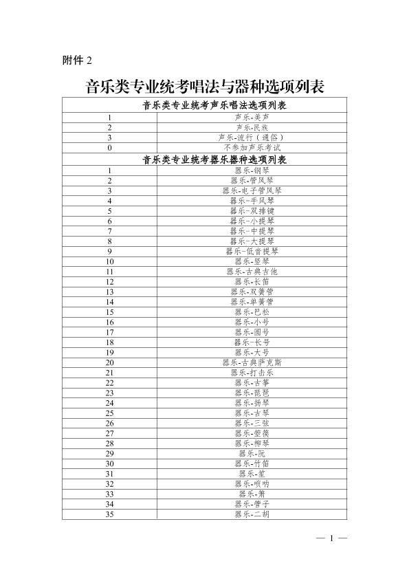 2.音乐类专业统考唱法与器种选项列表