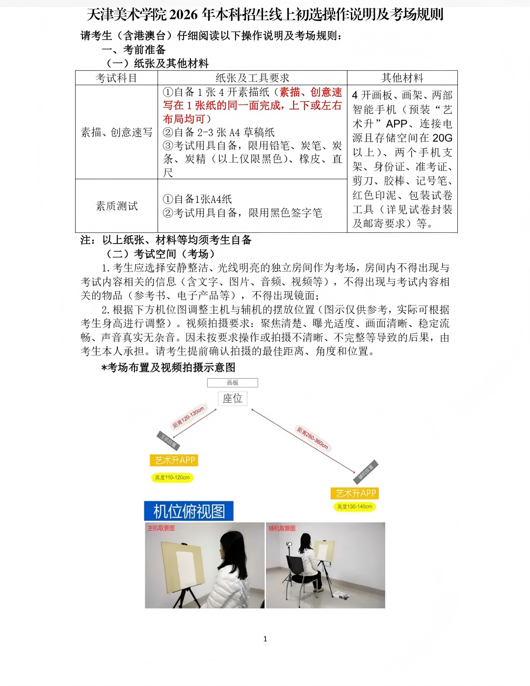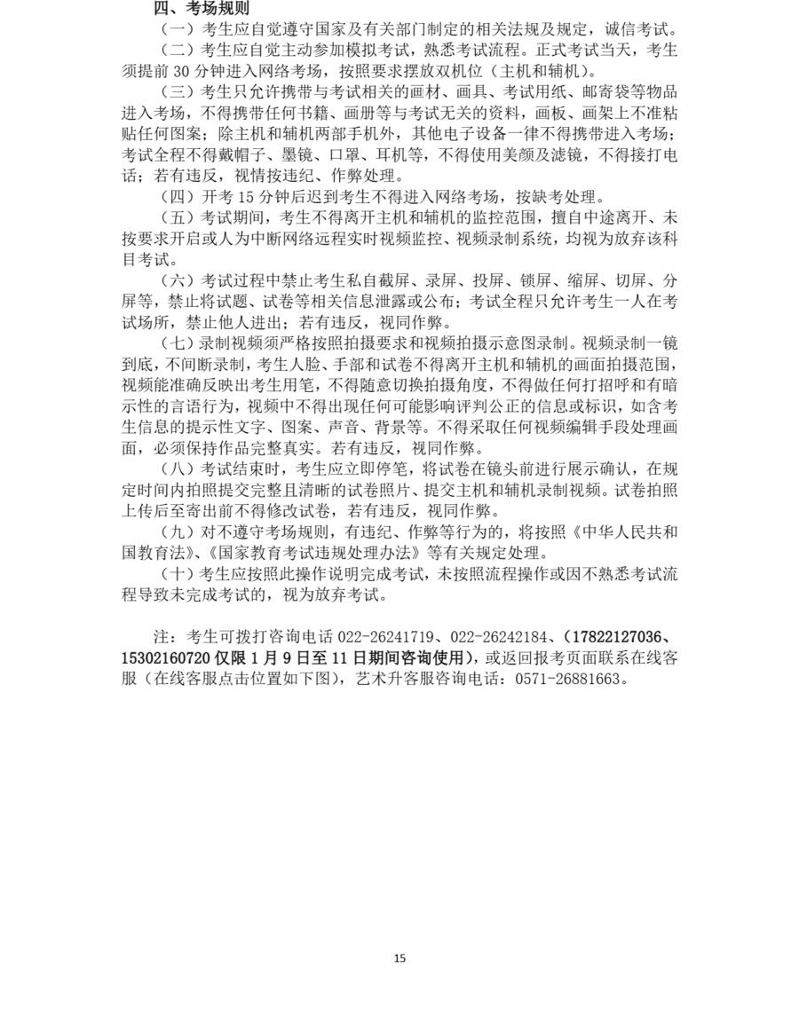 天津美术学院2026年本科招生线上初选操作说明及考场规则