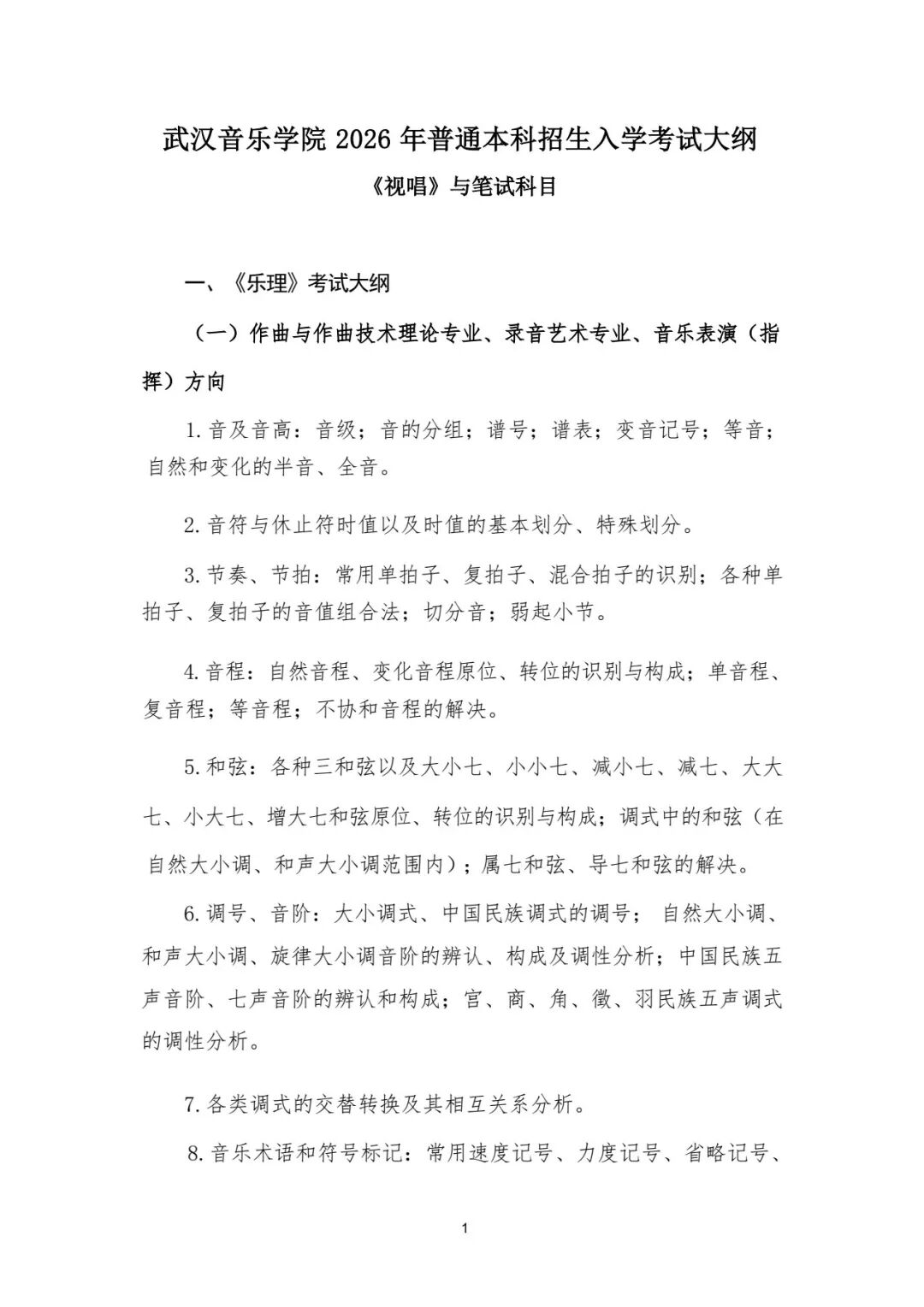 武汉音乐学院2026年普通本科招生入学考试大纲