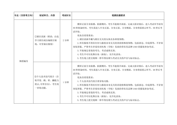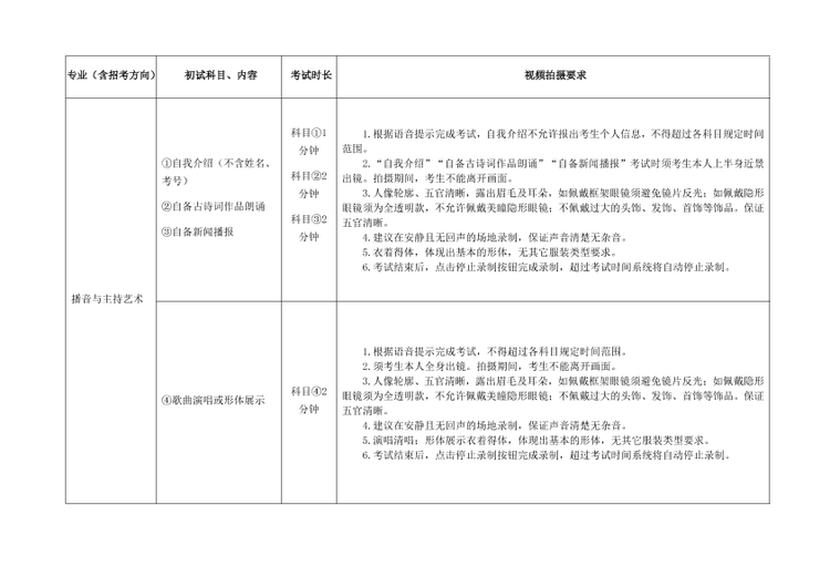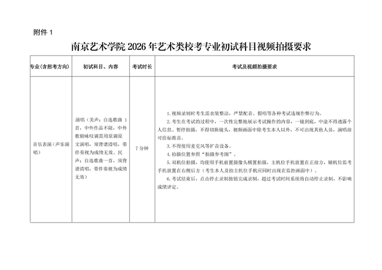 各专业初试科目视频拍摄要求详见《南京艺术学院2026年艺术类校考专业初试科目视频拍摄要求》(附件1)。