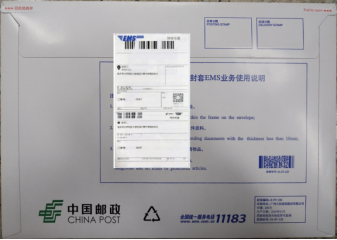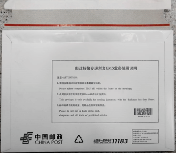 (密封袋封口后对折装入EMS信封)