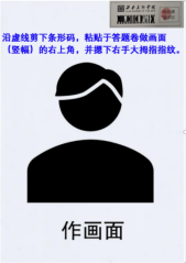 考生须将准考证上的条形码沿虚线剪下,粘贴于答题卷作画面(竖幅)右上角(如下图所示),在规定方框内摁下右手大拇指指纹,并在作画面背面左上角书写姓名、准考证号。考生须于正式考试前将答题卷准备好。