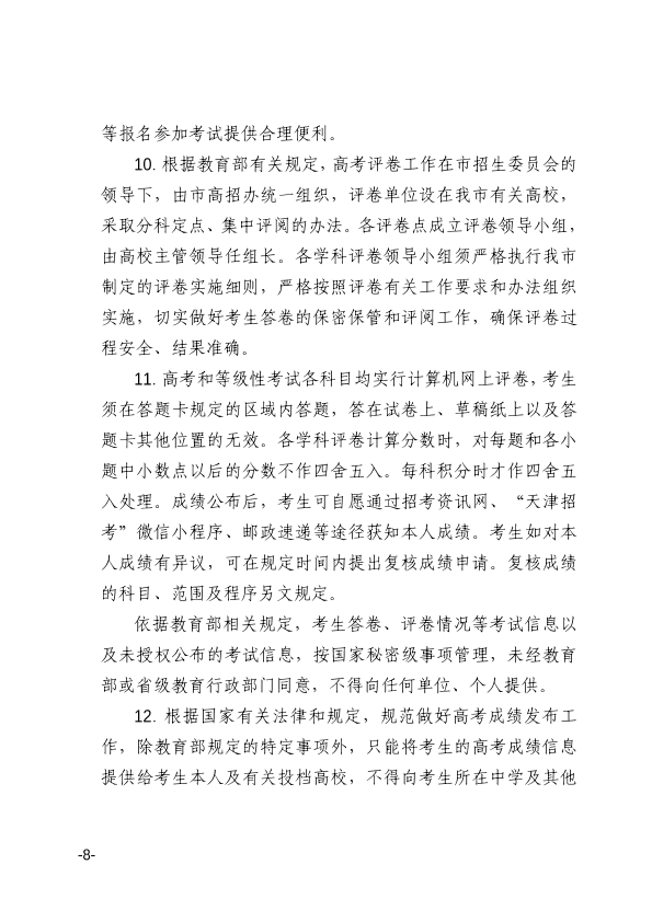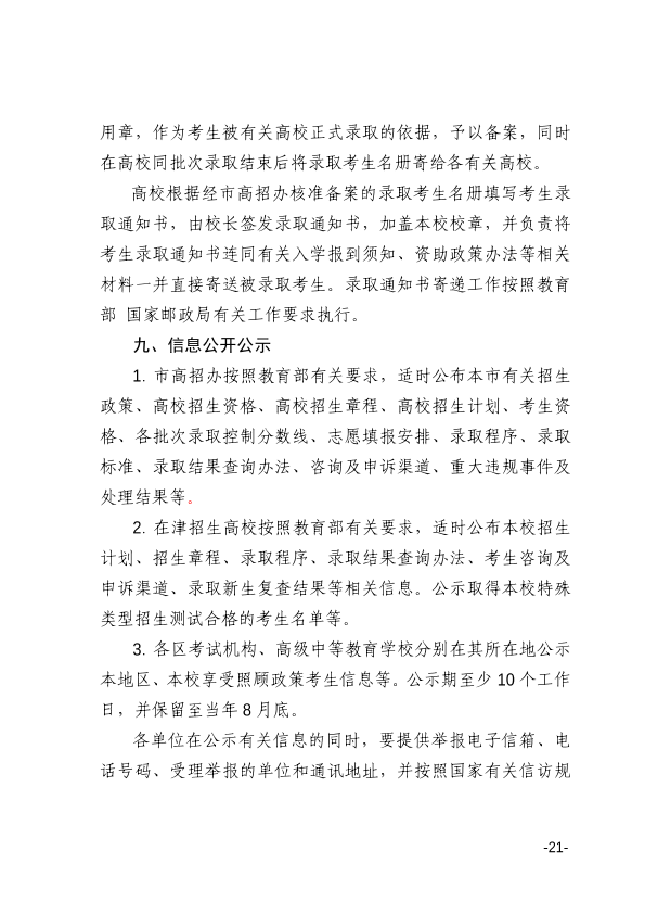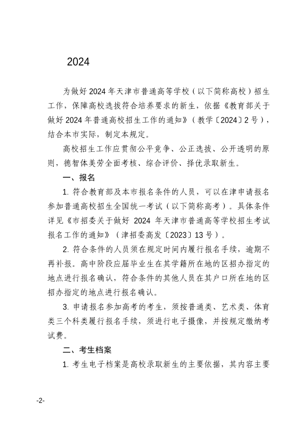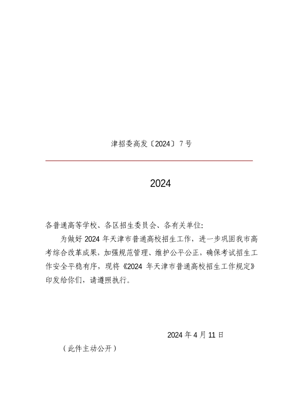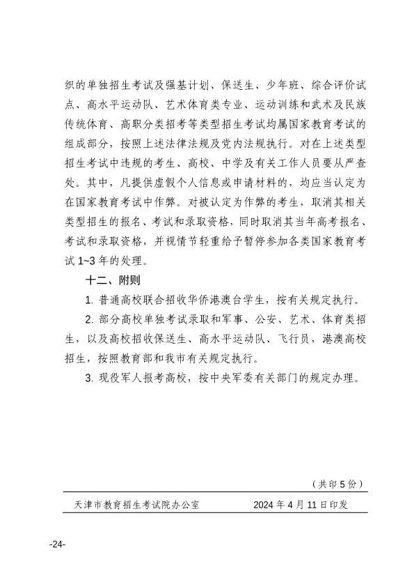 天津市招委关于印发《2024年天津市普通高校招生工作规定》的通知