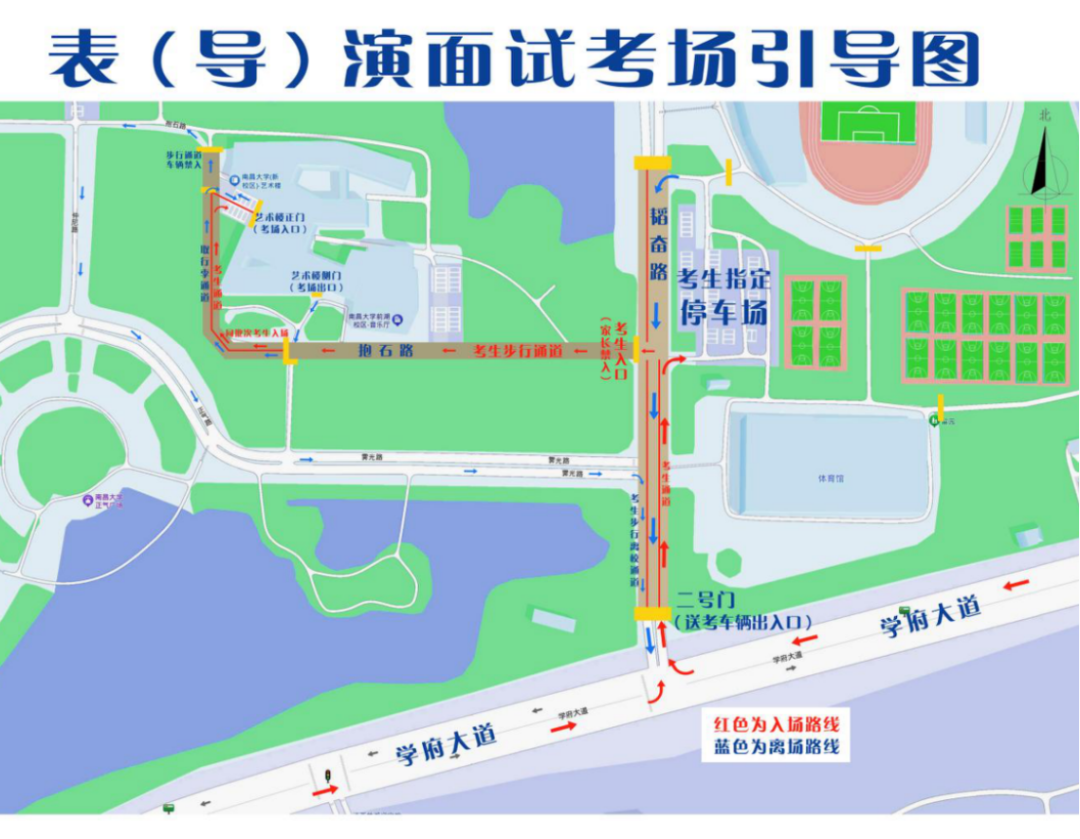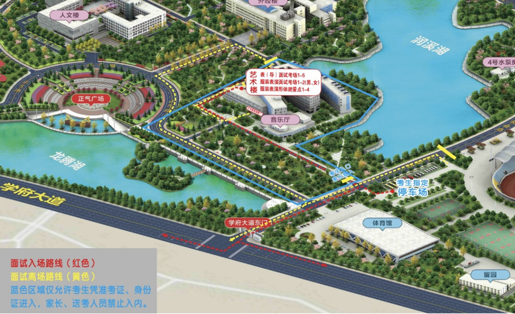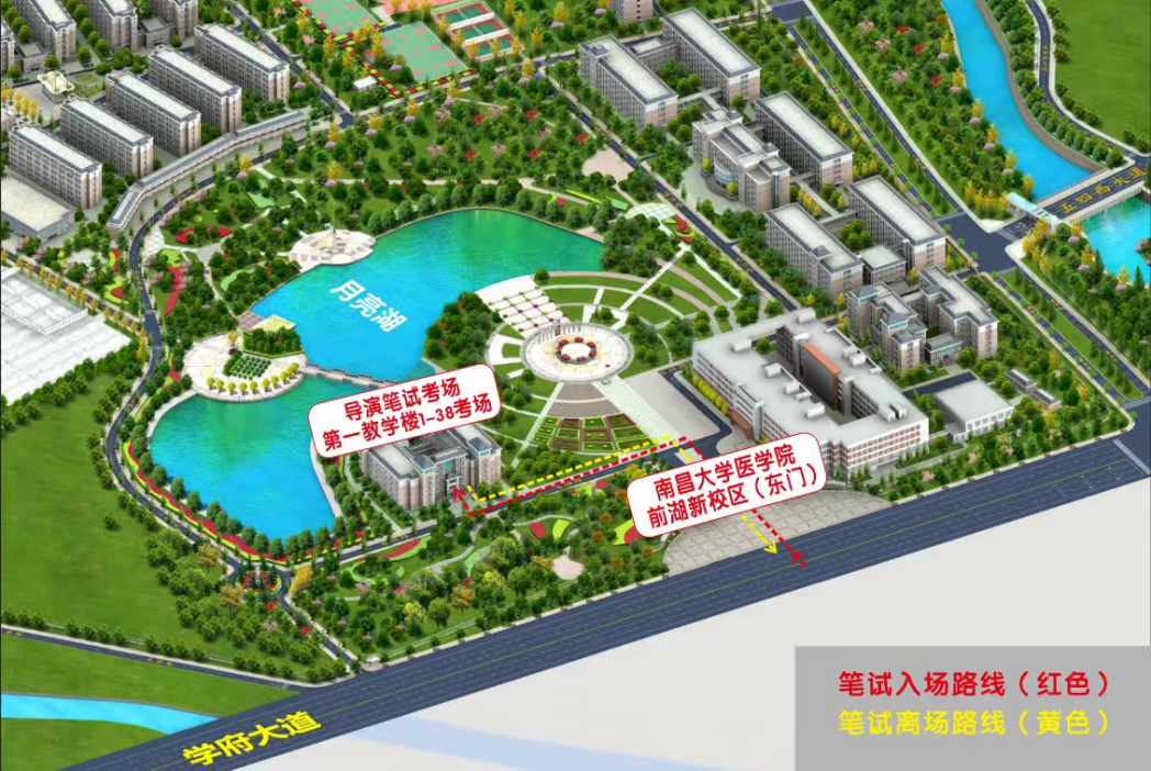 (2)送考大巴出入口:设在学校西南门(前湖大道)百度地图定位点。