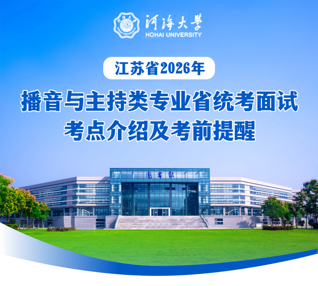 江苏省2026年普通高校招生播音与主持类专业省统考面试考点为河海大学江宁校区,请考生在规定时间到达考点并凭居民身份证和准考证进入考点。除考生外,其他陪同人员一律不得进入考点。