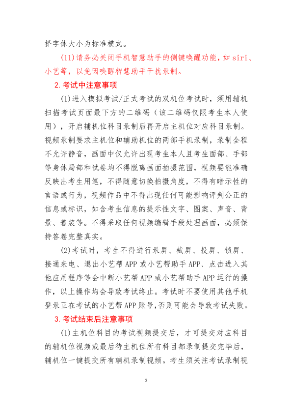 10.考试录制期间一定不能录屏、不能截屏、不能锁屏,手机需一直保持在考试录制界面,否则会导致考试失败。请考前务必检查手机,退出、关闭除小艺帮APP之外的其他应用程序,如微信、QQ、录屏、音乐、视频、在线课堂等。