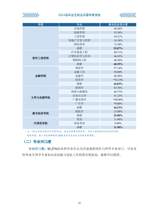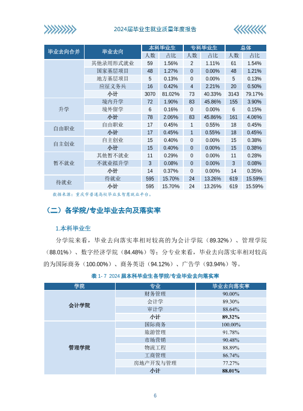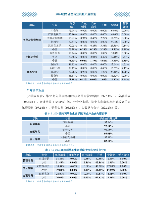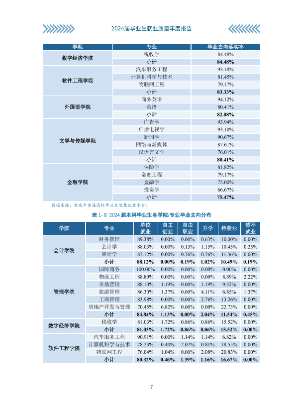 重庆工商大学派斯学院2024年就业质量报告