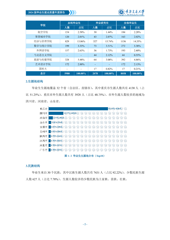 重庆交通大学2024年就业质量报告