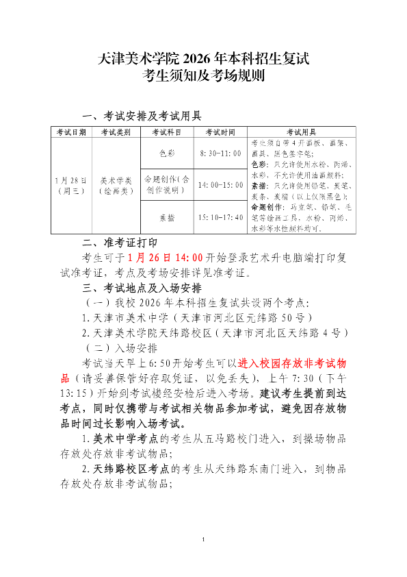 天津美术学院2026年本科招生复试考生须知及考场规则