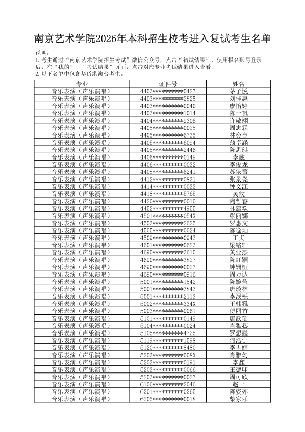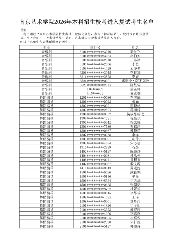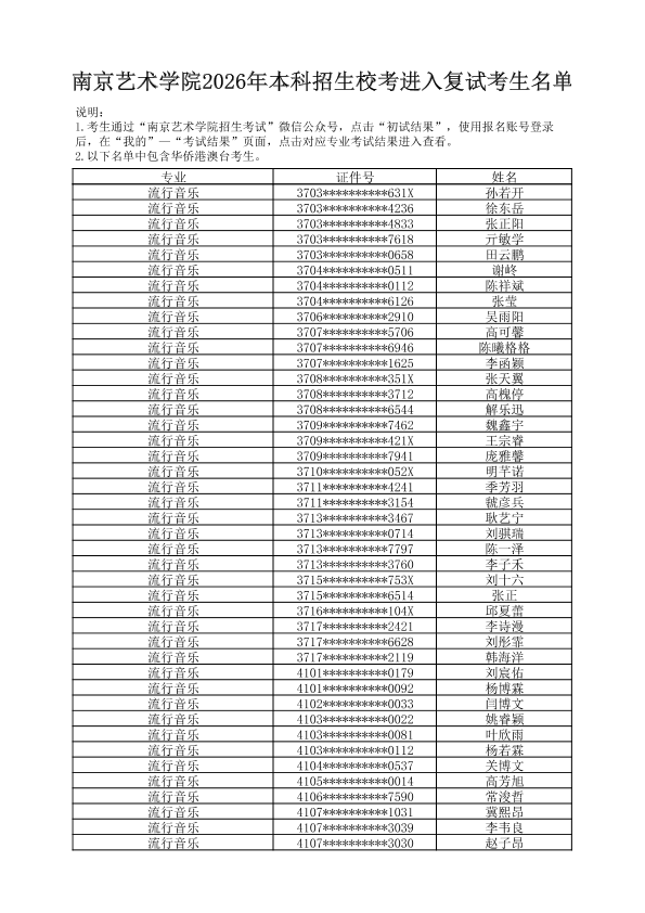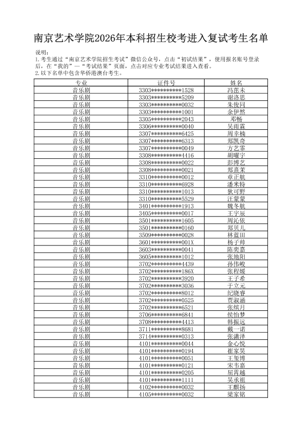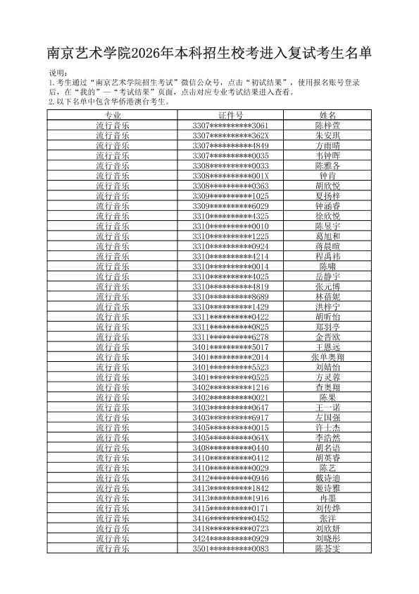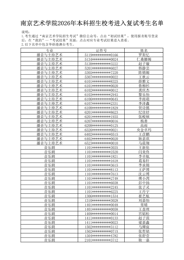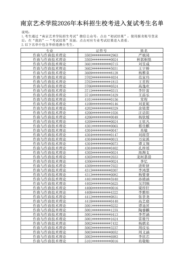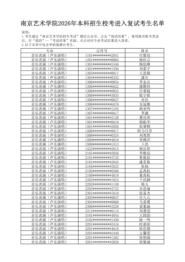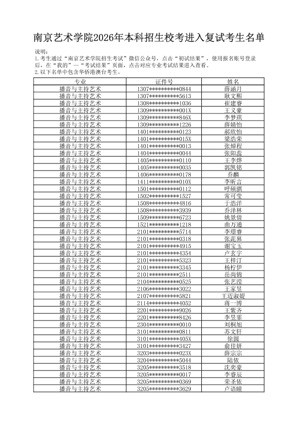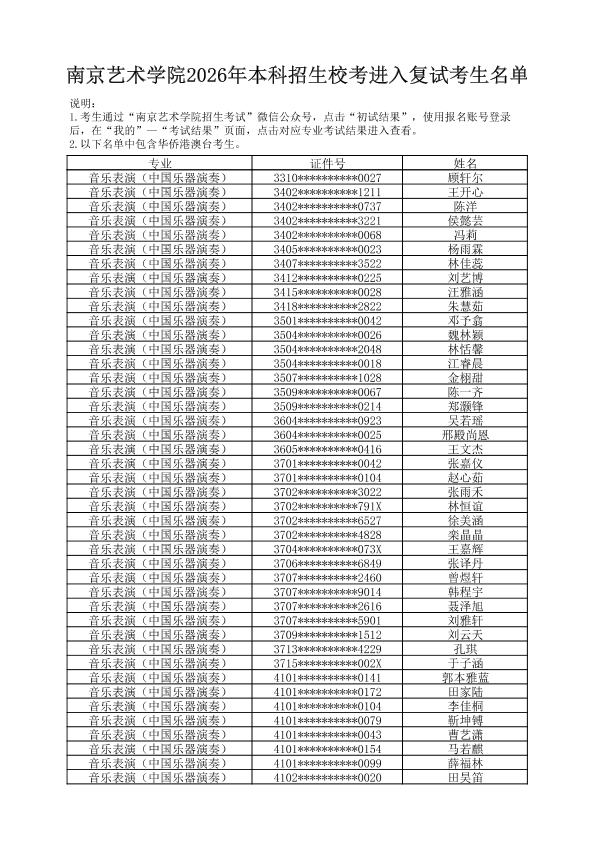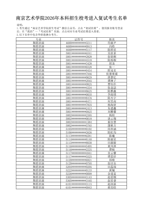 附件1:南京艺术学院2026年本科招生校考进入复试考生名单.pdf