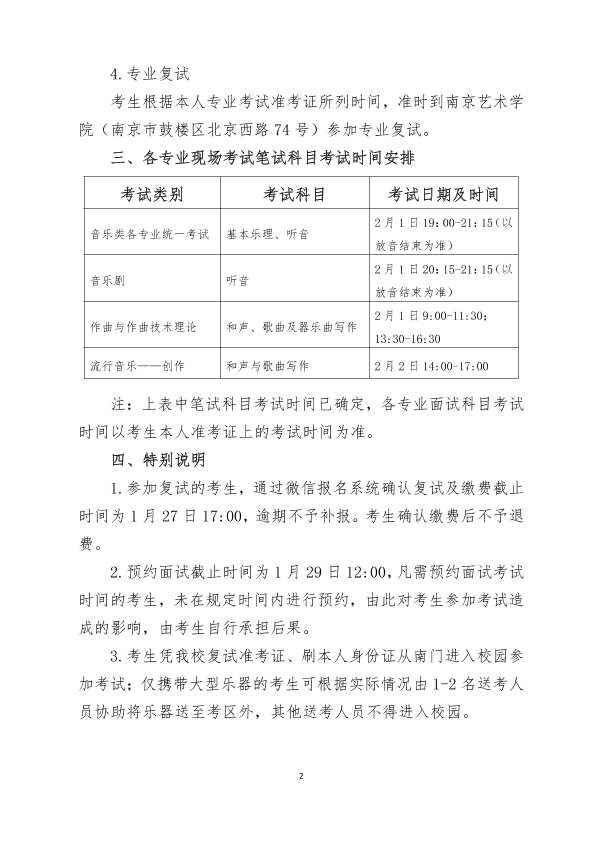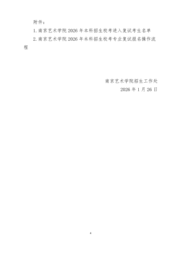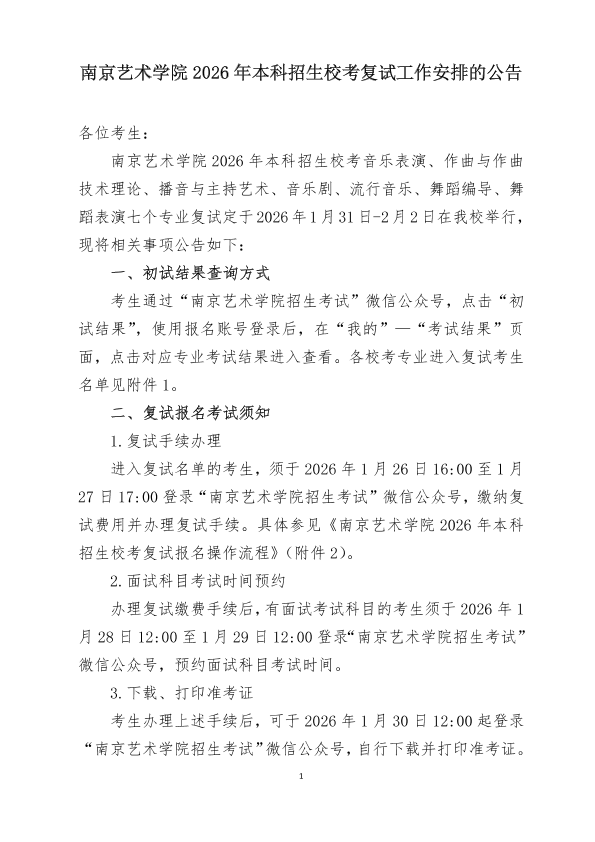 南京艺术学院2026年本科招生校考复试工作安排的公告