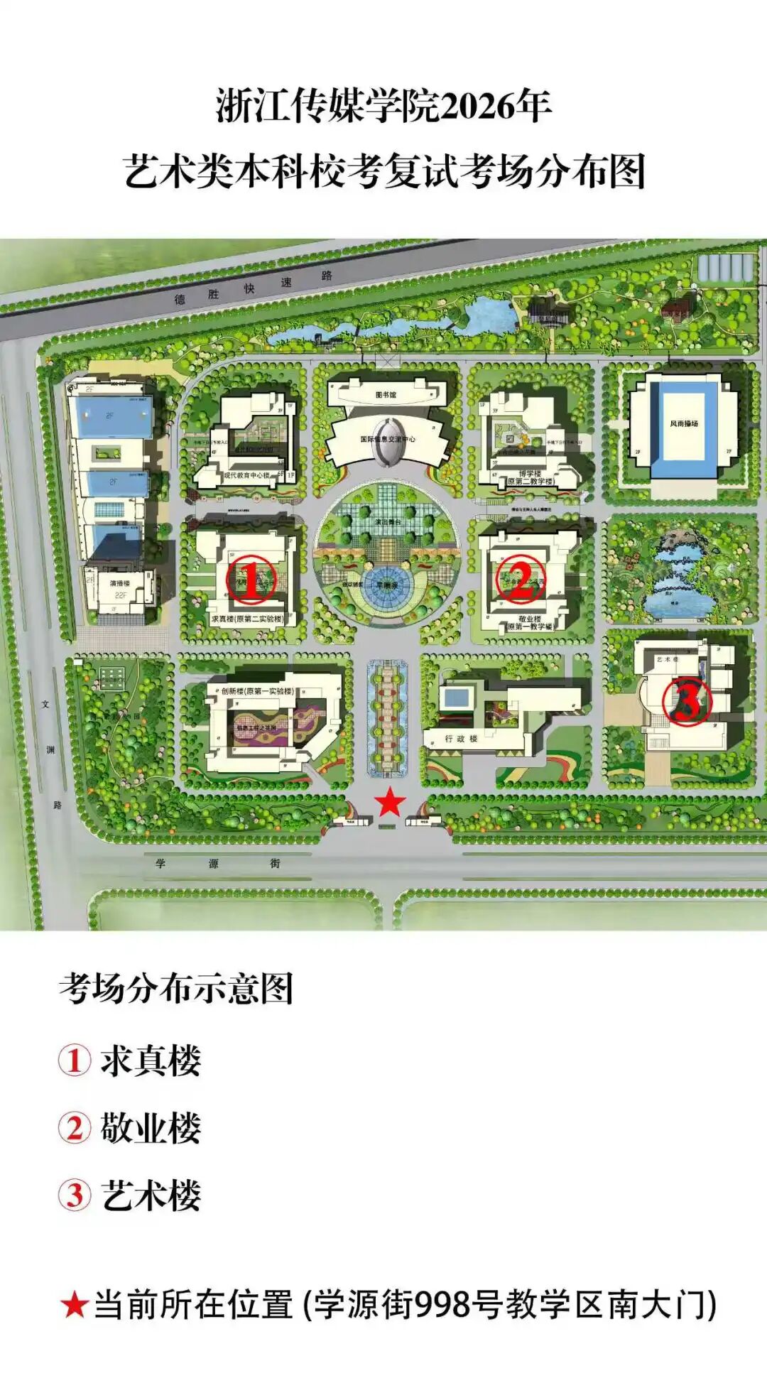 浙传校考复试期间(1月29日-1月31日),仅教学区南大门(学源街998号)开放考生通道哦!为了让大家安心考试,陪同家人和车辆请在校外稍作等候,我们会安排志愿者引导考生入校~感谢您的理解与配合!
