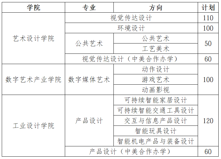 学校艺术类专业分三个学院开展招生培养,2026年面向湖北、北京、河北、山西、上海、江苏、浙江、安徽、福建、江西、山东、河南、湖南、广东、四川、陕西等省(自治区、直辖市)招生,预计招收600人左右。