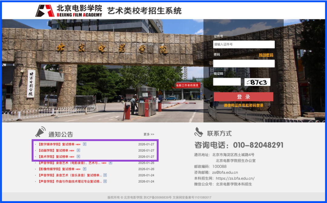 请考生 于2026年2月上旬访问我校招生系统(https://bkbm.bfa.edu.cn)“通知公告”处查询线下考试安排。