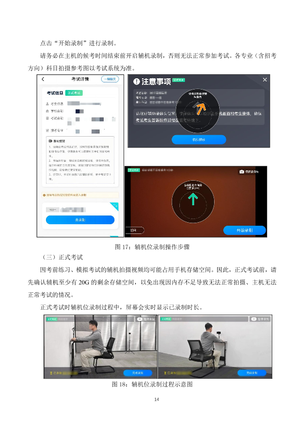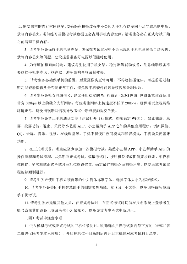 (1)主机、辅机均须保证至少20G的剩余可用存储空间,以保证在考试过程中不会发生因手机存储空间不足导致录制中断、录制内容丢失的情况。