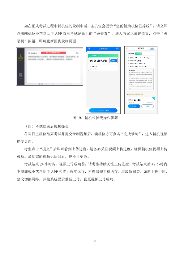 1.考生须按系统提示,于考试结束24小时内,完成并确保考试录制视频上传成功,否则视为考试无效,取消复试考试成绩。