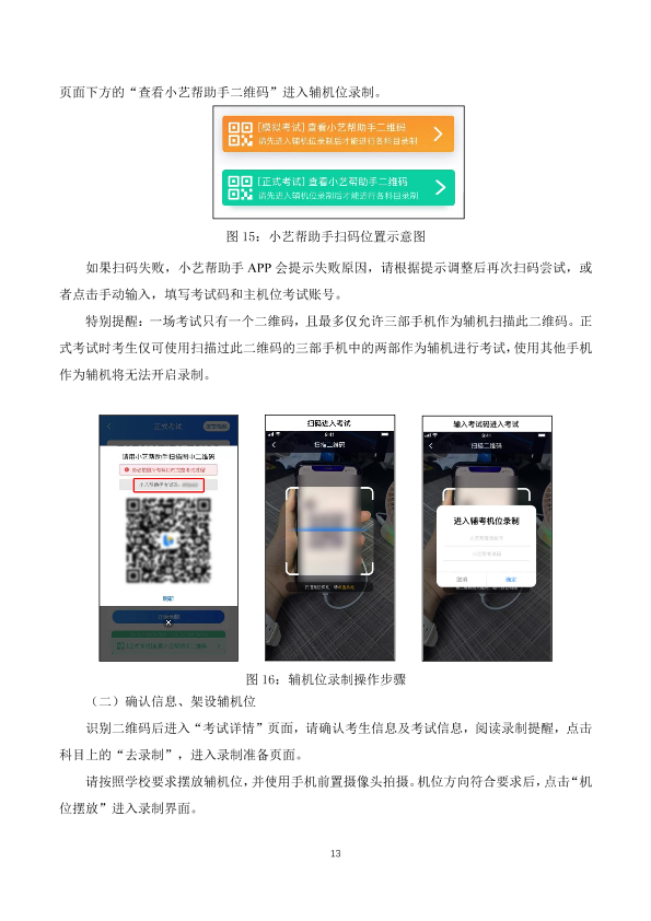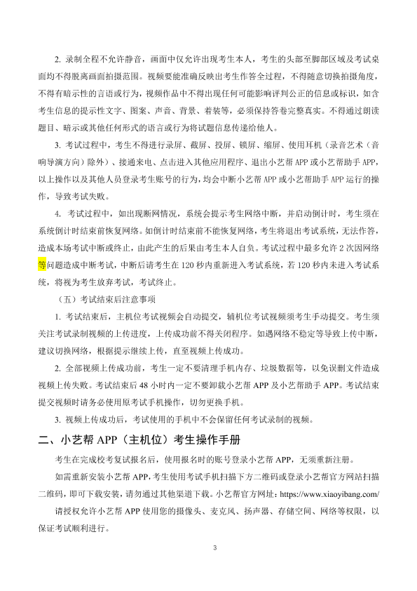 1.考试系统为小艺帮APP、小艺帮助手APP。参加采用单机位考试模式的考生,仅需安装小艺帮APP。参加采用三机位模式考试的考生,主机须安装小艺帮APP、两部辅机须安装小艺帮助手APP,两个软件不能在一部手机上同时使用。