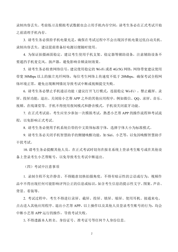 (5)除录音艺术(音响导演方向)专业“声音素材听辨”科目外,考试手机不得连接话筒、耳机等设备。