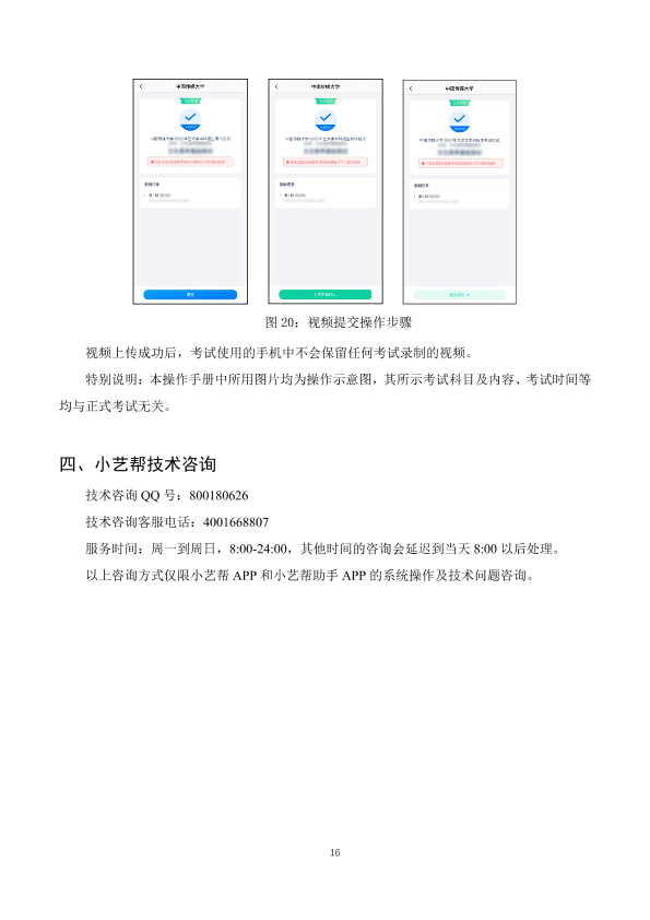 4.视频上传成功后,考试使用的手机中不会保留任何考试录制的视频。